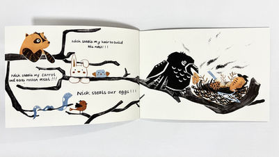 Nick tells the story of a crow being isolated because of stealing. These illustrations not only show readers that stealing is bad behavior but also reflect the importance of gratitude and friendship in the story.